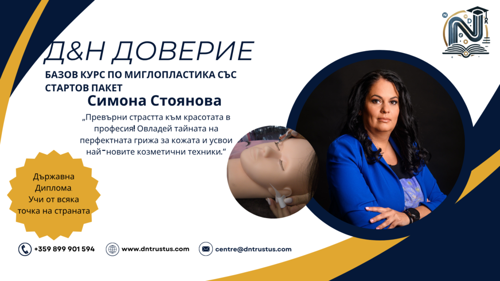 Удостоверение за професионално модулно обучение, възможност за Европас приложение, издадено от Център за професионално обучение Д&Н Доверие за обучение по Миглопластика